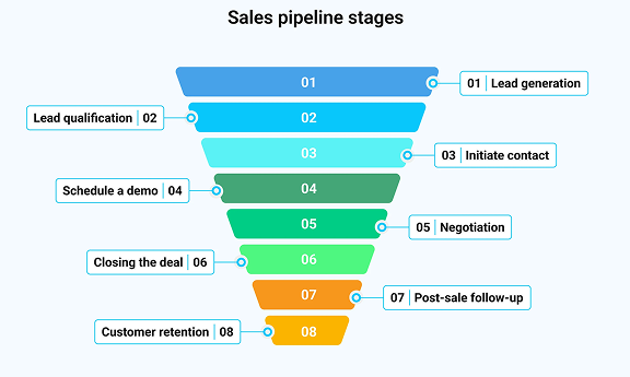 Each stage represents a distinct step in your sales process, such as "New Lead," "Qualified Lead," "Meeting Scheduled," "Proposal Sent," "Negotiation, " and "Closed- W on / L ost." The pipeline provides a clear, real-time overview of where every lead stands, allowing sales teams to prioriti ze efforts and identify potential bottleneck s.